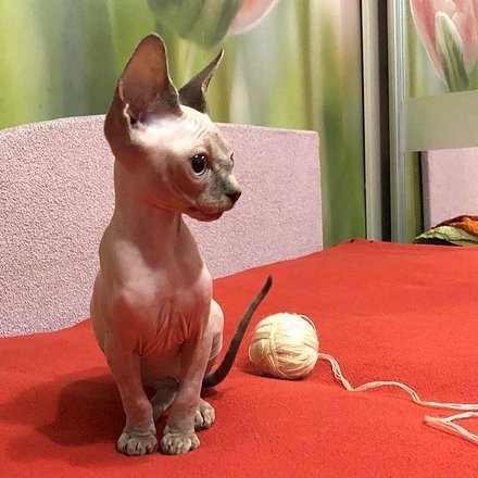 Tony  male Sphinx kitten in a white color with orange eyes. Specifications: Gender: male Date of Birth: December 15th, 2024 Place of