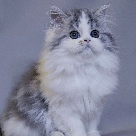 Qwenty in a blue bicolor purebred Scottish straight longhair kitten