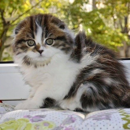 Talisa in a black marble bicolor purebred Scottish fold longhair kitten