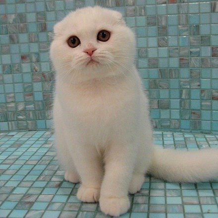 White Lotus in a  white color purebred Scottish fold shorthair kitten