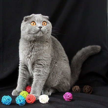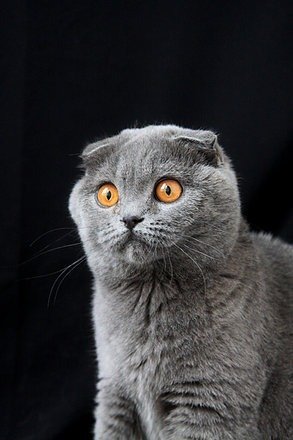 Cinderella purebred Scottish fold female kitten, in a dark blue color with orange eyes. Was born on September 28th, 2025. Available for reserve, pick up after March 15th. Delivery to other states is available.
