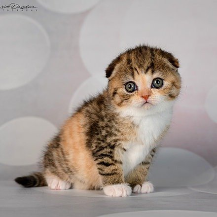 Halwa in a black spotted tortle color purebred Scottish fold shorthair kitten