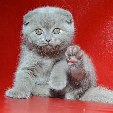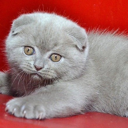 Jake in a lilac color purebred Scottish fold shorthair kitten