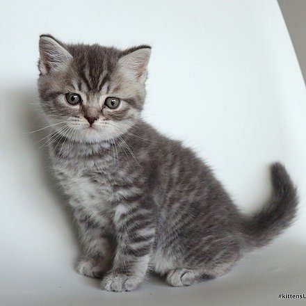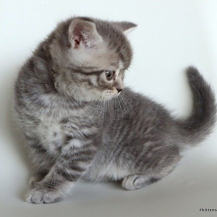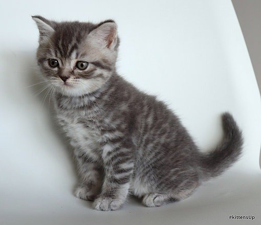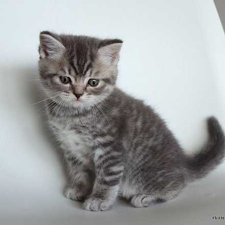 Lucky purebred, blue tabby male Scottish shorthair kitten with straight ears. Was born on August 25th, 2025