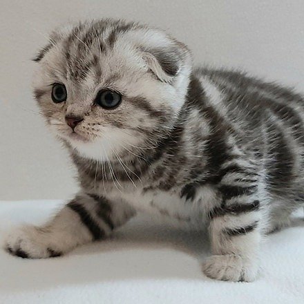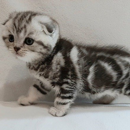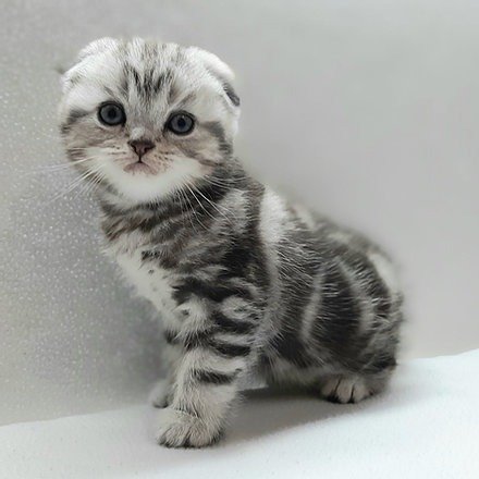 Quiver in a black silver marble color purebred Scottish fold shorthair kitten